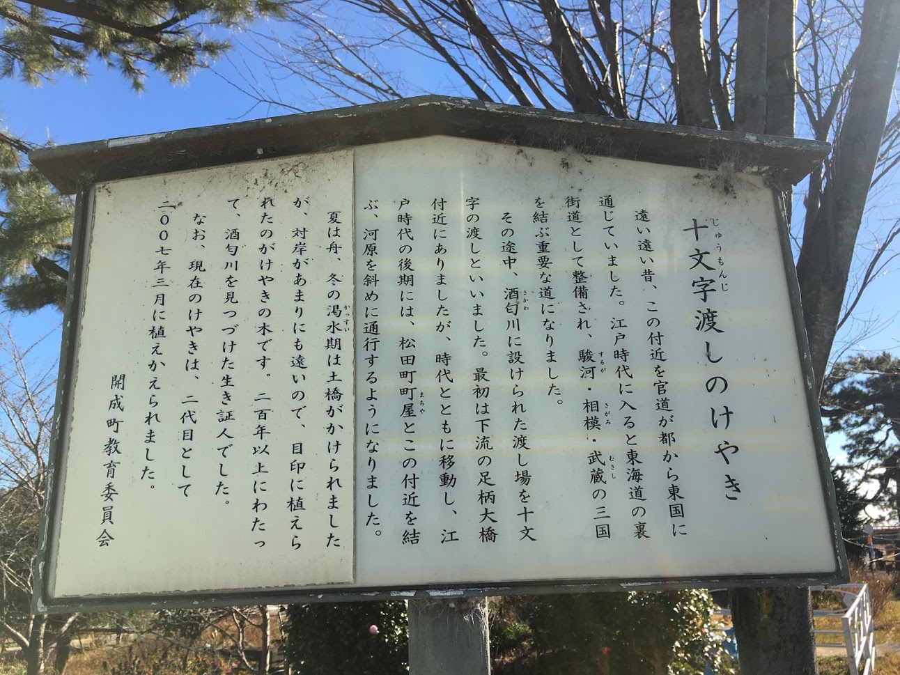 十文字渡し欅の由緒