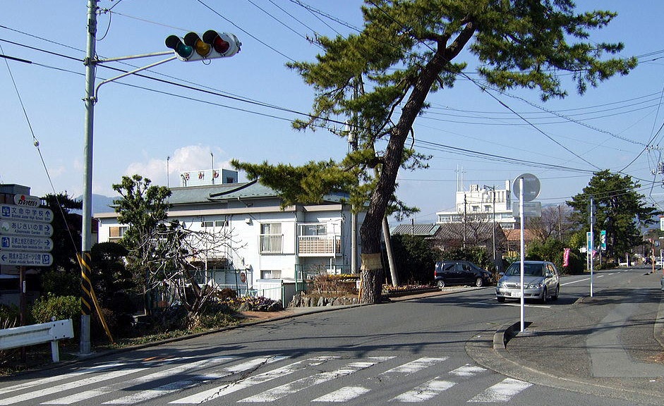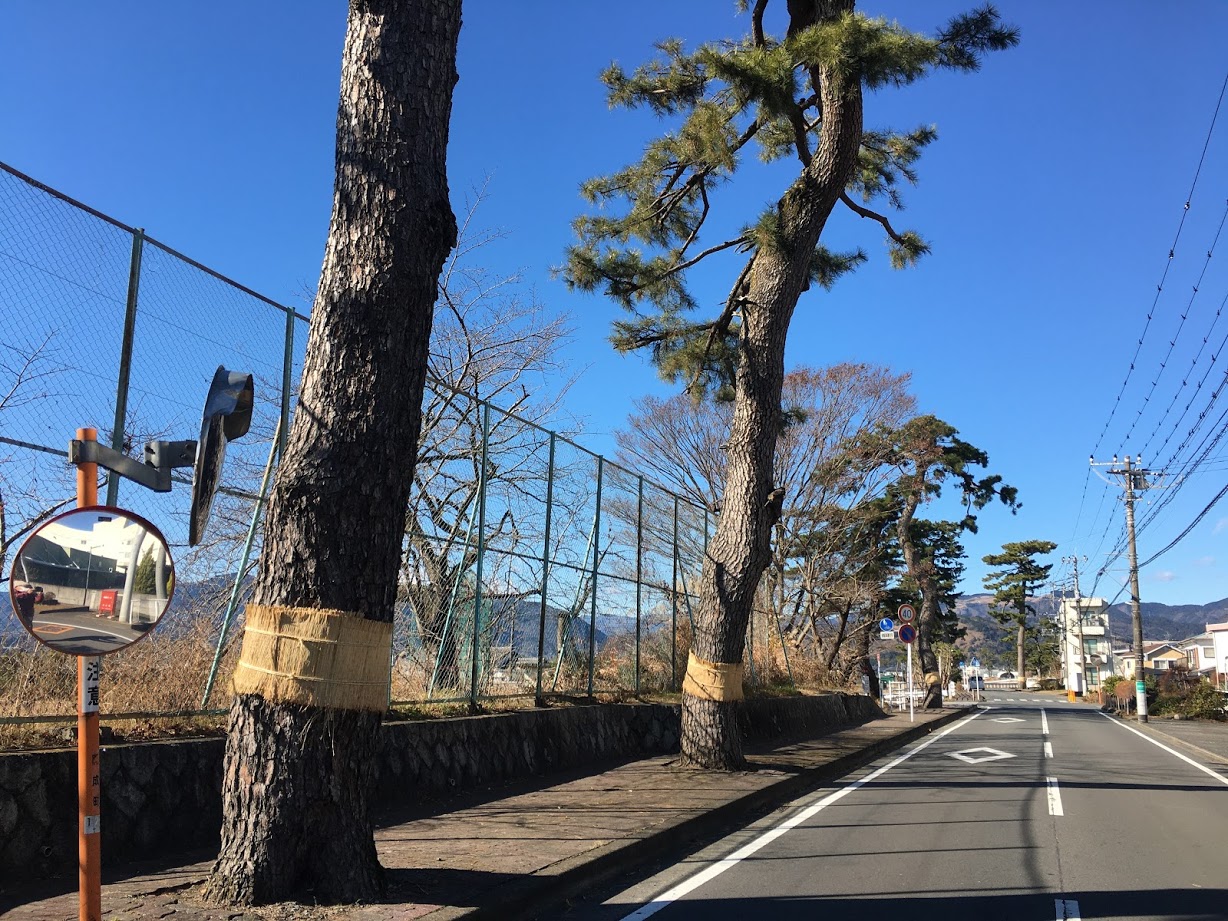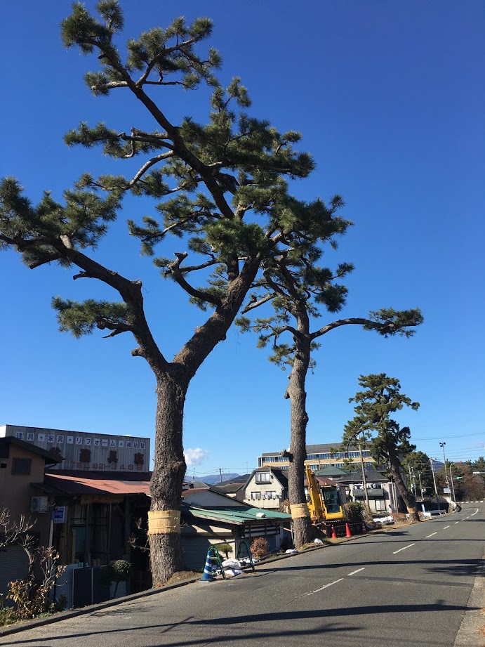 現在の尊徳松、二景 左側松田自動車学校前 右側合庁グラウンド東側(町道沿)